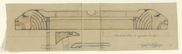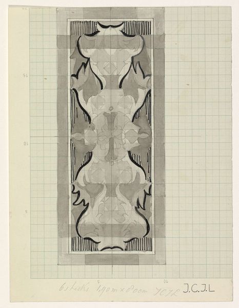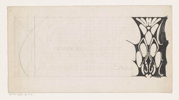 Curator: Looking at this piece, I immediately feel drawn into its graphic boldness, it’s like peering into an archaic alphabet, wouldn't you agree? Editor: Precisely. We are looking at "Ontwerpen voor een titelhoofd," created around 1901 by Reinier Willem Petrus de Vries. Executed in ink on paper, this drawing presents two unique designs that delve into the intersection of form and Art Nouveau aesthetics. It's an interesting example of using geometry as a visual object. Curator: Geometry gets such a bad rep sometimes. The artist just wants to make it pretty... The duality is really working for me. Two slightly varied designs; one strict and ordered, one wilder and a little bit more decorative... Editor: These designs, although static, invoke the feeling of growth or even germination with their rounded abstract shapes pushing up from a ground line. They speak to something primal within us. Perhaps the dawn of symbolic communication. What do you make of their near-symmetry? Curator: I think the symmetry creates this subconscious comfort while the asymmetry is an invitation into what could come. It gives it a "to be continued" kind of vibe that’s really magnetic! I'm seeing a grounded, but spirited energy. It reminds me of standing in front of an old tree feeling the tug of gravity while watching the breeze caress the highest leaves... I see strength reaching towards grace. Editor: Indeed. The play between controlled line work and organic abstraction underscores the tension inherent in Art Nouveau itself, the balance between industrial production and handcrafted uniqueness. The contrast creates a feeling of being pulled simultaneously backwards into older more romantic symbolism and forward into something wholly new. Curator: A portal through art, I’d say! Editor: Absolutely, it makes one consider the weight and intention behind the design process... Curator: You're so right, I can see this on anything from a book cover to maybe even repurposed as a brand logo today... The lines might be old, but its design is, essentially, timeless. Editor: And therein lies its continued relevance for a modern audience. The language of symbolic communication endures.