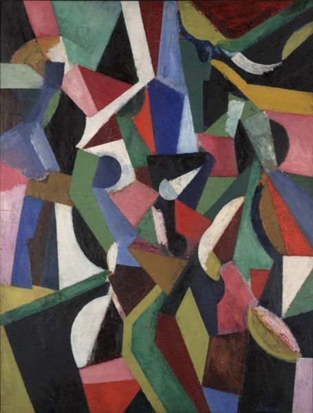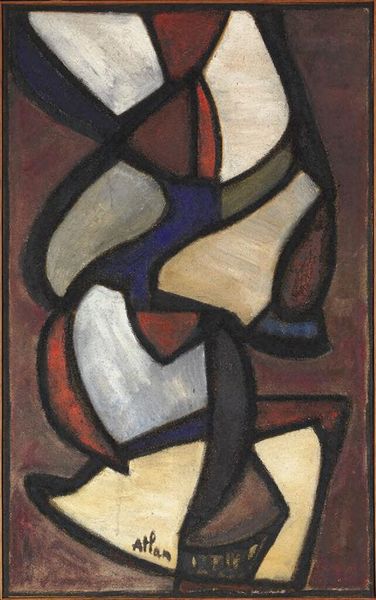 Curator: This untitled work by Jean-Michel Atlan, painted in 1959, strikes me as both vibrant and deeply unsettling. It's a powerful first impression, almost primal. Editor: I see it too! It's jarring yet, paradoxically, seems carefully constructed. What can you tell me about its symbolism, its language? Curator: Well, Atlan's style is deeply rooted in Abstract Expressionism, and in many ways challenges it through Surrealist principles. Notice how these thick, dark lines attempt to define these ambiguous fields of colour. The forms push the limits of abstraction as a rejection of oppressive forces and a commitment to raw emotion. Editor: So the black lines represent a kind of containment, yet the colors feel like they're actively resisting those boundaries. Thinking of this in terms of post-war art and theory, do you think it critiques the power structures being built after the war? Or offers an escape? Curator: That is a great connection! Consider that these forms, while abstract, often carry anthropomorphic or totemic suggestions within Atlan's wider work. I suggest that we explore what these abstract beings *remember.* Post-war Europe was forced to rebuild collective memory, and this can take the form of a confrontation. What seems 'garish' can reflect psychological tension. Editor: I agree, there's definitely a sense of struggle. Even the palette is tense – the reds feel almost angry, fighting against the cool blues and greens. Thinking about gendered colors and figures... Curator: Atlan had been described to channel imagery and philosophy from ancient Hebrew mystics, especially concerning themes of gender. This painting gives the sense of the ancient made modern again, drawing inspiration from older modes of expression but giving them an abstract language. I sense continuity. Editor: It seems to exist outside the bounds of traditional understanding. These abstract figures push up against familiar and imposed ideas. Is there any further information about its place in Atlan's political life? Curator: Well, being of Jewish-Algerian heritage, his work offers unique perspective into postwar French art as it began to deal with these tensions. Editor: These conflicting symbols and forces seem a microcosm for the conflicts that pervaded society, made raw on canvas. What a testament to resilience. Curator: Absolutely. And Atlan reminds us that forms and images do much more than merely fill a canvas; they reflect our deeper, shared history.