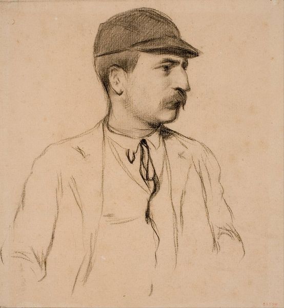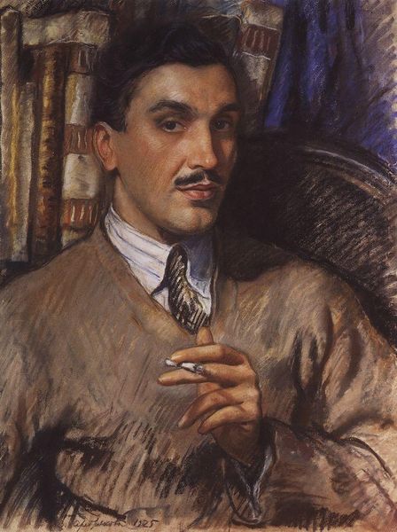 Editor: This is Zinaida Serebriakova’s 1926 pencil drawing, “Portrait of Aleksandr Petrovich Prokopenko.” I find the lines that compose the drawing so interesting. How does this portrait strike you? Curator: Oh, how astute of you to observe those lines! The lines and subdued palette contribute to the image's striking contemplative quality, almost as if we're peering into the subject’s inner thoughts. To me, this work embodies a certain modern sensibility with a delicate nod to academic portraiture; it evokes a sense of intimacy between artist and sitter. Notice the deliberate choice to leave some areas unfinished; does that imply something to you? Editor: It’s almost like the parts of the portrait that are fully articulated carry the most meaning, drawing our eyes to his face and hands, I think? And is it fair to call the composition pretty direct? Curator: Exactly! The eyes are the windows, after all. It's interesting you call it direct because it allows us to feel that immediacy; we’re unburdened by extraneous detail, just a study of a person. A bit like glancing at a fleeting, deeply felt moment. Do you think it gives you a sense of who Aleksandr Petrovich Prokopenko was? Editor: That's a tricky question! Perhaps an intellectual? Someone who valued introspection, maybe? I’m enjoying the chance to explore my perception through this portrait! Curator: Precisely! It reflects less about Prokopenko himself and more about how we, as viewers, connect and project our narratives, using those incomplete bits to imagine a whole life. It also brings us closer to the artist, since a portrait can be so telling about how one person sees another, don't you think? Editor: That’s so true. Now I feel I have a whole new perspective!