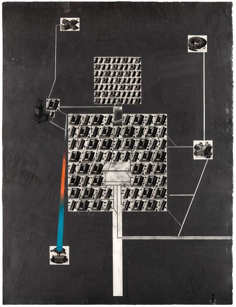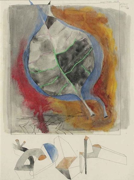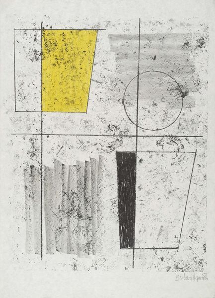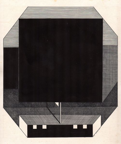 Editor: So, this piece, "From now on, a red line… 1970", is a mixed-media work including watercolour by Alekos Kontopoulos. It's quite striking, with these very geometric forms softened by the watercolour washes. What strikes me is this sort of tension between the rigid geometry and the ephemeral nature of watercolour. How do you interpret this interplay? Curator: Well, let's think about 1970. This piece emerges during a time of significant political upheaval and social change. In this context, how do we interpret the artist's use of geometric shapes? Could they represent an attempt to impose order, control, or rational thought onto a chaotic world? The “red line” seems to bisect that imposed order. Editor: That's fascinating. I hadn't considered the historical context so directly, but the imposition of order makes sense. The red line, though… does that introduce the idea of transgression, perhaps? Curator: Precisely. Art doesn't exist in a vacuum. Looking at Kontopoulos's work, it's crucial to understand how Greek socio-political history might inform the artist's practice. Considering that Kontopoulos spent time in exile for his anti-junta activism, the red line could indeed be an active condemnation against forces in opposition of freedom and progress. How does that perspective change how you view the "red line"? Editor: It definitely gives it a new urgency! It shifts from being simply a formal element to a symbol of resistance. What do you think this suggests about the intended public role of the artwork? Curator: It invites us to reflect on the ongoing struggle between structure and freedom, constraint and expression, especially considering his exile and his open disapproval for oppressive figures. Considering his socio-political views, the piece has a deeper significance in speaking out against oppression, challenging power, and creating change. What does the piece make you think now? Editor: Now I see this as a call for viewers to find the intersections between art, life, and freedom, as if it is a message speaking beyond time. Curator: Exactly. Recognizing historical influences has that potential to deepen understanding. Editor: I totally agree. Thanks to our discussion, I understand that the red line goes beyond mere colour—a testament against historical injustice.