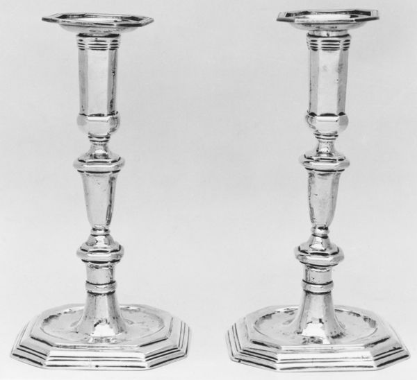 These silver candlesticks were crafted by Charles Petit, a Parisian silversmith, sometime between 1629 and 1725. Petit worked during the reign of Louis XIV, when France was a major center for the production of luxury goods. Considered in their historical context, such exquisite objects shed light on societal structures. Silverware during this period was not merely functional; it was a symbol of wealth and status, often displayed to reflect the social standing of its owner. The craftsmanship invested in these candlesticks speaks to the resources and labor hierarchies of the time. As objects, they prompt consideration of how domestic spaces were illuminated and the rituals associated with candlelight. What kinds of stories were told in the candlelight these objects provided? What kind of ambiance was created? These candlesticks offer an intimate glimpse into the lives of those who could afford such refinements.