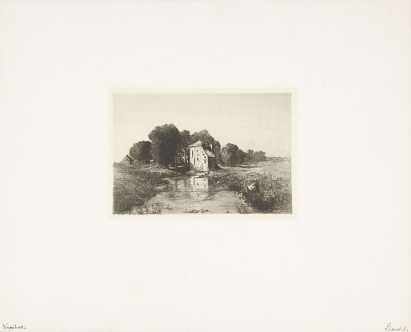 Editor: Here we have "Ruïne op een heuvel," or "Ruins on a Hill," a print by Félix de Baerdemaecker, created sometime between 1846 and 1878. There's something really haunting about this little house on a hill. It’s…geometric, somehow. It seems abandoned and almost sinister. What do you see in this piece? Curator: Haunted is a great word for it. You know, I always wonder about these structures... who walked those paths? Did children ever play within those crumbling walls? There's a certain romanticism artists found in ruins – a memento mori, if you will, a reflection on time’s passage. The composition, too, is striking: the stark lines and the contrast with the hill, a symbol, maybe, of humanity’s aspirations and inevitable decay. Does it conjure up anything personal for you? Editor: That’s beautiful. You're right, I guess I always thought of ruins as a very serious theme…but it is about something simple. A simple reminder that nothing is meant to last forever, maybe? Curator: Precisely! And perhaps, the beauty lies not just in the structure itself, but in our response to it, this very contemplation. The artist presents it, yes, but we imbue it with meaning through our personal experiences. What feeling will someone else viewing it conjure, I wonder? Editor: It makes you wonder, doesn’t it? That is one of the wonderful things about art, and you brought that to life for me. Curator: I couldn’t agree more! It's always such a pleasure to delve into these visual narratives with someone so receptive!