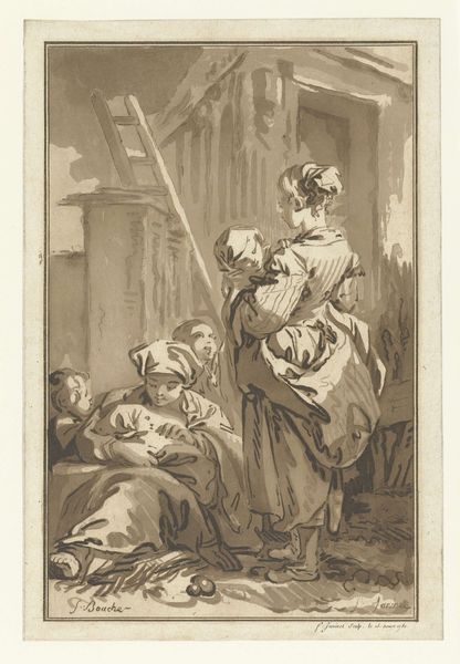 Curator: The scene is brutal, yet the sepia tones lend an almost classical feel. Editor: Indeed. This is François Philippe Charpentier's "The Beheading of Saint John the Baptist," now held at the Harvard Art Museums. It's a powerful depiction of a biblical event that has inspired countless artists. The composition is dominated by the looming figure of Salome and the executioner. Curator: Absolutely. The repetition of heads, both living and severed, creates a disturbing visual echo. The figure of Salome, holding the platter, stands out. Her presentation is not celebratory, but rather a symbol of a dark triumph. Editor: The politics inherent in this scene – the power dynamics, the public spectacle of violence – it's all laid bare. Consider how this image might have functioned in its own time, reinforcing certain social hierarchies. Curator: And how it resonates today, reminding us of the enduring human capacity for both cruelty and religious fervor. The cultural memory embedded here is potent. Editor: A stark reminder that art, even when depicting the macabre, serves as a mirror to society.