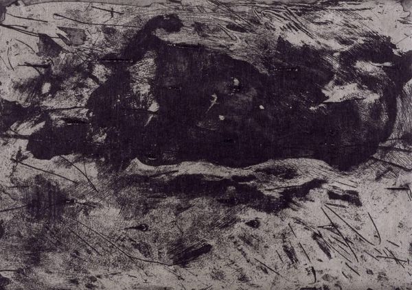 Curator: Mariano Fortuny Marsal created this intaglio print, titled "Dead Kabyle," in 1867. It’s a somber piece, wouldn't you agree? Editor: Yes, incredibly somber. The stark contrast between light and shadow, combined with the subject matter, evokes a powerful sense of loss and stillness. There's something about the figure being shrouded, yet vulnerable, that really stays with you. Curator: Fortuny made this print during a period of significant colonial expansion by European powers into North Africa. Understanding this context, the image gains a complex historical and political weight. Editor: Exactly! How does it reflect the era's perception and representation of colonized peoples? I'm immediately questioning the power dynamics inherent in a European artist depicting the death of a Kabyle man. Was it meant to be an objective study, or something else entirely? Curator: That is very perceptive. We need to analyze the motivations behind the piece's creation. This falls into a complex tradition of Orientalist art. "Dead Kabyle" reveals both artistic skill and potentially problematic ideological underpinnings linked to power, colonialism, and representation. Editor: The intimacy of the scene is striking, yet there’s distance. Notice how his face is concealed? It depersonalizes him in a way. That candlestick and plate seem out of place. It reduces him to an object, part of a still life, devoid of individuality. We must interrogate this depiction! What narrative does Fortuny create, and for whom? Curator: It’s interesting how the realism clashes with that romanticizing effect. His visible bare feet add another dimension, rendering the figure both relatable and utterly foreign. Perhaps it attempts to bridge a gap, even unsuccessfully, or even dangerously so. Editor: Definitely. There is no single interpretation; instead, it's a piece that prompts deep reflection about how death and cultural identity are visualized within a context of inequality. Curator: By considering this artwork through both historical context and a critical contemporary lens, we can encourage visitors to engage actively with issues of representation and cultural power dynamics. Editor: I’d agree completely. "Dead Kabyle" remains a potent and provocative image, encouraging important dialogues on history, representation, and the continuing legacies of colonialism.