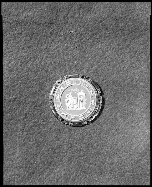 Editor: This is "Pegasus Cared for by Nymphs" by Wedgwood. The miniature relief carving feels so serene and classic. What kind of stories do you think it's trying to tell with the imagery it employs? Curator: Notice how Pegasus, a symbol of inspiration and poetic flight, is grounded here, being cared for. What does it mean to tame inspiration, to nurture it within a domestic or natural sphere, symbolized by the nymphs? Editor: That's fascinating. It's like the wildness of creativity is being softened. Curator: Precisely! Wedgwood often tapped into classical imagery to imbue his works with a sense of timelessness and refined taste, reflecting the cultural aspirations of his clientele. What new connections did you draw? Editor: I see the power of classical symbols to convey complex ideas. Curator: Indeed, symbols can be a doorway to understanding history and our collective dreams.