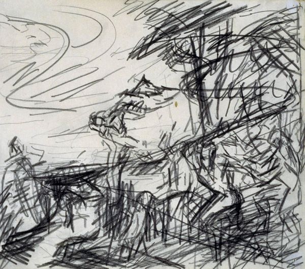 Hryhorii Havrylenko made this drawing, In Love, with ink on paper. It looks like the image emerged through the process of mark-making. Look at how the rapid, angular lines create a sense of depth and shadow, almost like emotional weather. The hatching that defines the landscape and figures isn’t just descriptive; it's expressive. It’s like the artist is thinking with his hand, letting the ink wander and find its own way. I find the face of the figure on the right, with its simple, bold lines, particularly striking. There’s a raw honesty in the way Havrylenko reduces the features to their most basic elements, evoking a sense of vulnerability. It reminds me a bit of Guston, who embraced a similar kind of directness. Ultimately, this piece resists easy answers, inviting us to bring our own experiences and interpretations to the work. Art’s like that, isn’t it? An ongoing conversation.