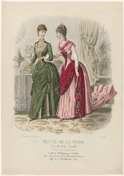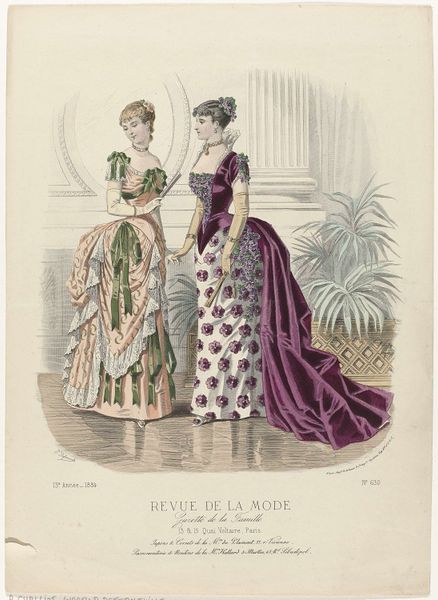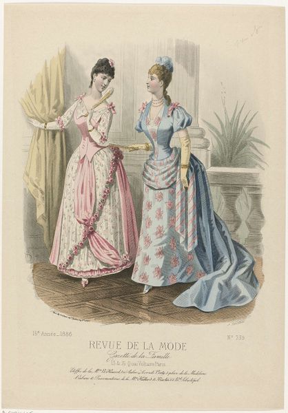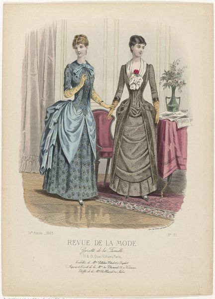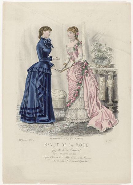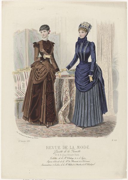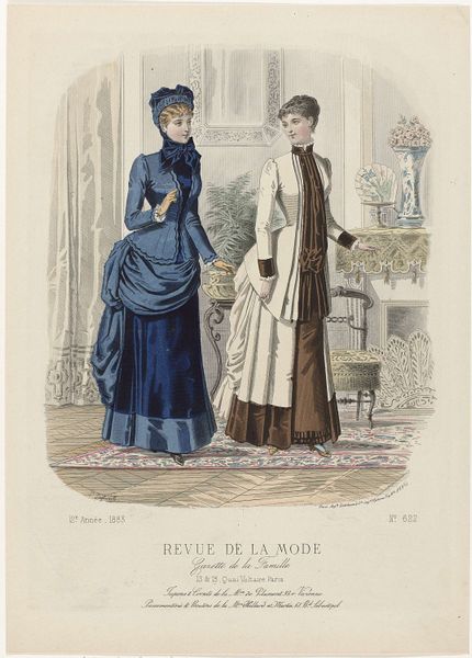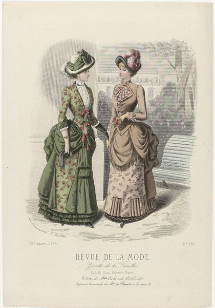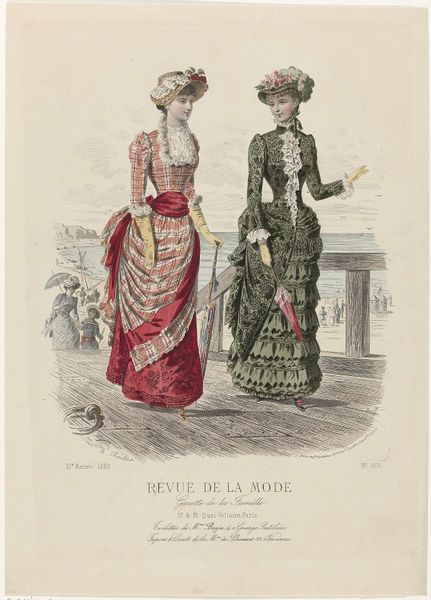 This print, made by P. Deferneville in France in 1883, comes from the fashion magazine Revue de la Mode. These magazines were aimed at upper and middle-class women. This image presents us with a question: is it simply a record of fashionable dress or is it also a visual statement about the social roles of women? The image promotes an ideal of feminine beauty that was closely tied to social status. We see the careful attention to detail in the clothing, hairstyles, and accessories. They speak to the economic privilege required to acquire and maintain such garments. The poses and expressions of the models also reflect a certain degree of social restraint. Historians use a wide variety of resources, including periodicals, newspapers, and personal papers. They help us to understand these images as more than just pretty pictures. They show us how they participated in the construction of social identities in their own time.
