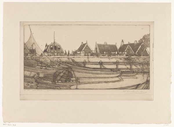 This is Wijnand Otto Jan Nieuwenkamp’s ‘Haven van Volendam’, made without colour using a variety of marks on the printing plate. It shows an interest in mark-making, which, for me, is where so much of the art is. You can tell it's an etching because of the fineness of the lines, and the way they describe the forms so precisely. There is an almost obsessive quality to the detail in the buildings and boats. The etching medium allows him to render textures with such detail that, for me, he almost gets away with using no colour. Look at the individual strokes Nieuwenkamp uses to create depth and shadow. The lines are incredibly delicate. Even with this intricacy, you can still see how his hand moved across the plate, the pressure he exerted, the rhythm of his marks. Artists like Giorgio Morandi, famous for his etchings of bottles, spring to mind, as they share a similar dedication to process and a love of line. Ultimately, it's that ambiguity and the invitation to look closer that keeps me coming back.