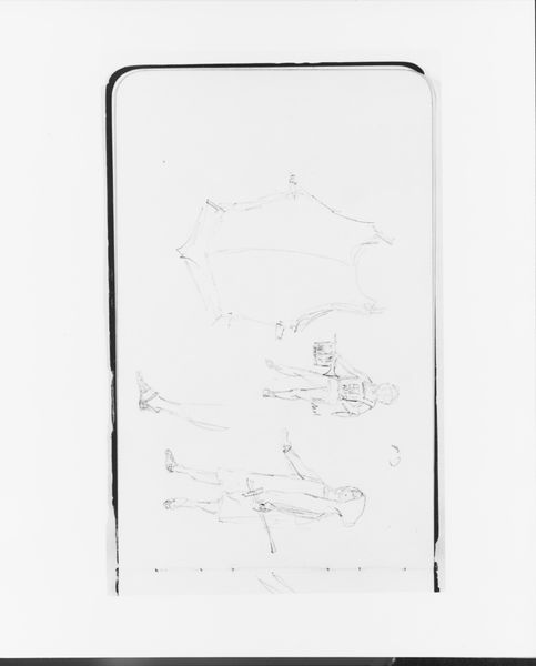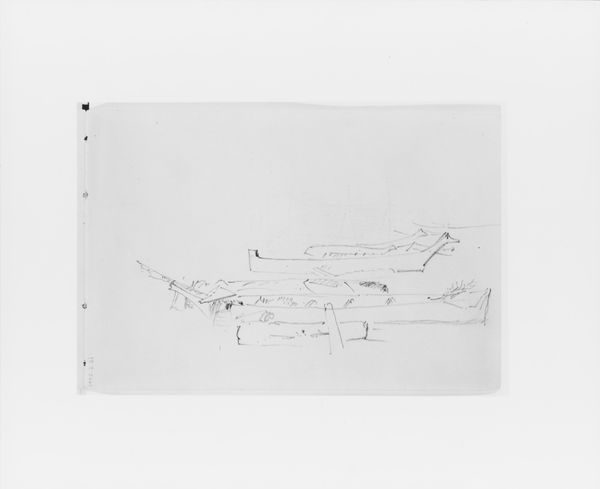 Curator: Here we have a drawing entitled "Landscape," dating back to 1885, part of Sketchbook X, by William Trost Richards. It resides here at The Met. What’s your initial reaction? Editor: Faint! It looks like a half-remembered dream of a forest. Almost ghostly, sketched with the lightest touch. I feel like I'm intruding on something very private. Curator: It’s deceptive, isn't it? An intimate glimpse into the artist's process, yet made for public consumption. Richards, celebrated for his detailed seascapes, gives us something rawer here. Look at the medium – pencil and ink on paper. This isn't about the finished masterpiece, but rather the immediate capture of an idea. A social practice that became common during the second half of the 19th century with the growing popularity of sketching from nature. Editor: I agree, it feels wonderfully free. I think most people associate Richards with watercolours in almost photographic detail. So this skeletal approach is a surprising look inside. It’s the opposite of those works; it’s as if he’s barely holding onto the landscape himself, just grabbing what is in front of him. You can practically feel his hand moving across the paper! What about the wider cultural moment do you think is influencing this work? Curator: Considering the period, the late 19th century, landscape art served varied purposes. Industrialisation had led to people flooding the cities, which gave rise to anxieties about nature and purity. However, depictions of natural beauty, like this drawing, were popular and could offer a nostalgic counterpoint to this urbanisation. The late 19th Century also sees an obsession with science. As society changed, with it came our ideas about time. Scientific understandings and temporal frameworks encouraged individuals to confront their own relative insignificance in the grand scale of temporality and space. The landscape allowed people to find their relationship with themselves. Editor: True! There's a certain romantic melancholy in that starkness that really resonates. I also find myself trying to decipher each little line. There is a whole history there! For instance, those zig-zaggy marks, are they tree tops? Or some wild undergrowth? This sketch encourages an engagement. It shows how provisional reality is. Curator: It invites that kind of intimacy, doesn't it? A collaboration with the viewer to fill in the blanks. Editor: Absolutely, William Trost Richards lets us walk through the dream together, with him! Curator: It certainly challenges what we expect a finished work of art to be. The loose touch makes it timeless.