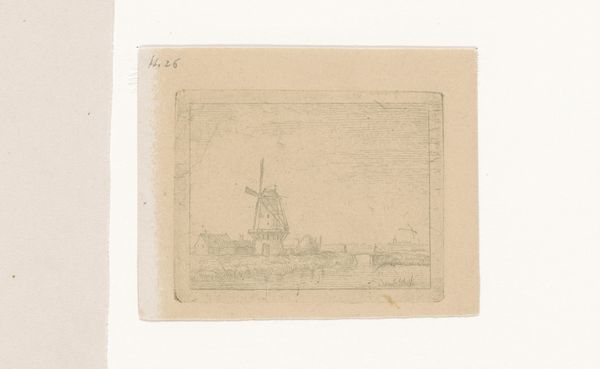 Robert Mols created this small etching called 'Molen aan het water', or 'Mill by the Water' during the late 19th century, a period defined by rapid industrialization, urbanization, and a growing interest in landscape as a symbol of national identity. Mols, like many of his contemporaries, turned to the countryside for inspiration, seeking refuge from the changing world. In the 19th century, windmills were not just industrial structures, they also held a profound cultural significance, embodying the spirit of Dutch ingenuity and perseverance. They became powerful symbols in art and literature, representing an idealized version of rural life. Notice how Mols used the etching technique to create a sense of depth and texture in the landscape. This speaks to the nostalgia for a pre-industrial past, suggesting a longing for simpler times. The mill, standing against the horizon, evokes a sense of solitude, reflecting the emotional complexities of a society undergoing radical transformation. It reminds us of the human connection to the environment.