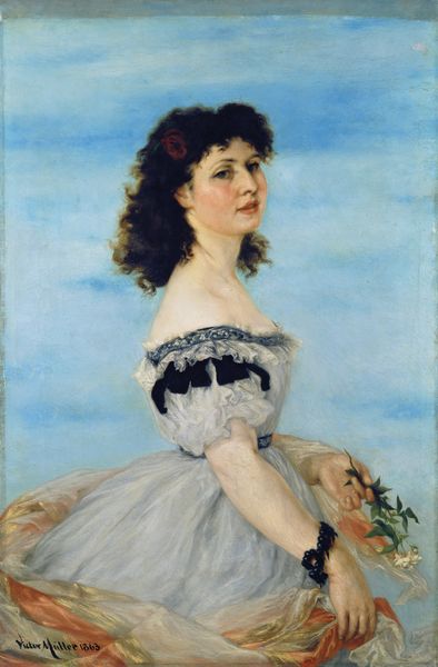 Peder Severin Krøyer painted this portrait of his wife, Marie, in 1891 using oil on canvas. The composition is immediately striking for its simplicity. Marie's profile, softly lit, is set against a muted background, creating a serene and intimate viewing experience. Krøyer's use of line is particularly effective. The gentle curve of Marie's neck and the delicate lines of her facial features draw the eye, while the ruffled collar adds texture, subtly destabilizing the smooth surfaces. The restrained palette, dominated by soft whites and creams, enhances the overall feeling of calm, yet it is punctuated by the gold brooch, adding a focal point. This portrait exists not just as a representation but as a carefully constructed arrangement of form and color. Krøyer presents an image that invites contemplation, reflecting the aesthetic and philosophical interest in the role of art as a space for personal and subjective experience.