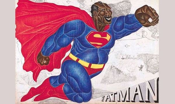 This is Andy Warhol's "Superman," from his "Myths" series, and in it, he layers screen printing to create this sense of motion, of Superman, like, bursting into action. I love how Warhol uses color here—the bold blues and reds against that stark black background. It’s not subtle, but it's also got this strange flatness to it. Look how the colors are laid down; they don't blend or fade. You get these clear, defined edges, which give it that pop art punch. Then, you notice the textural differences. The screen printing process gives it a certain graininess. It’s not about hiding the process; it’s about embracing it. Check out the right arm. See how the colors are slightly off-register? That slippage reveals the mechanical process, the layers of color building up this iconic figure. And that arm, raised in triumph, becomes almost abstract. It's all about the gesture, the power, and the myth. It reminds me of other artists who explore the idea of celebrity and repetition, like Richard Hamilton. It’s cool to see how artists are constantly riffing off each other.