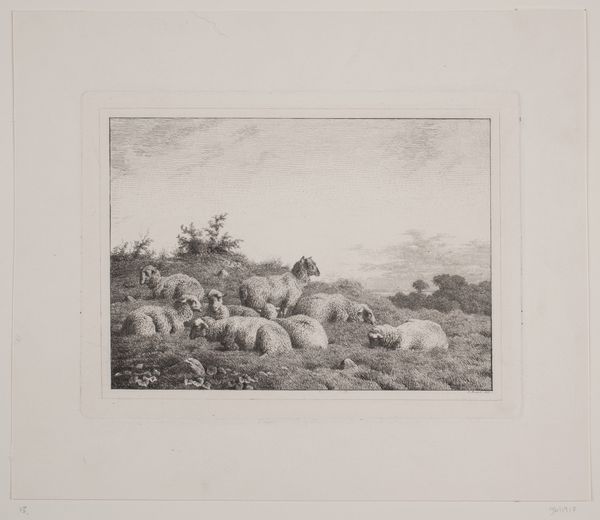Christian David Gebauer created this print, "Overfald på en marketender," using etching. Look closely at the texture achieved through the fine lines, creating a sense of chaotic movement across the small plate. The composition is structured by diagonals, from the lower left to the upper right, emphasizing the dynamic action of the robbery. Gebauer uses line to create form, from the muscular tension in the horses to the billowing smoke. Notice how the values transition from light to dark to convey depth and the frenzied atmosphere. This rendering of an assault, carefully etched, reflects broader narratives of power, conflict, and social disruption. The contrast between the bandits and the victims challenges our fixed meanings of law and order. The scene operates within a semiotic system, where each figure and element functions as a sign, contributing to a narrative about social hierarchy and the disruption of peace. Consider how the formal qualities of the print—the lines, the composition—contribute not just to its aesthetic, but also to its engagement with the philosophical and cultural dialogues of its time.