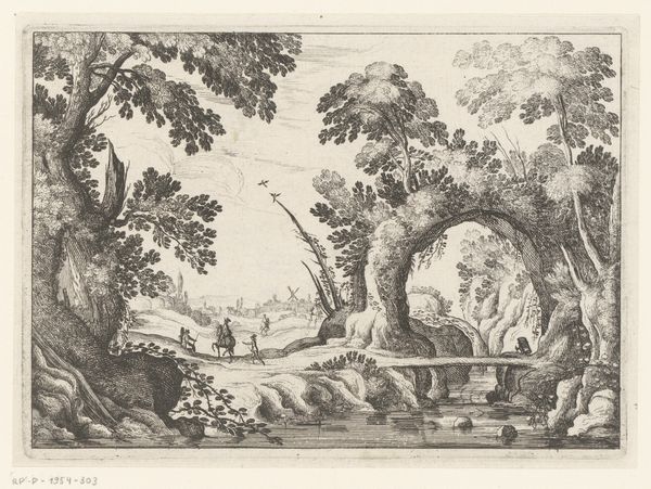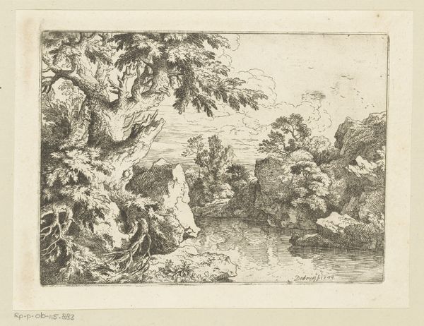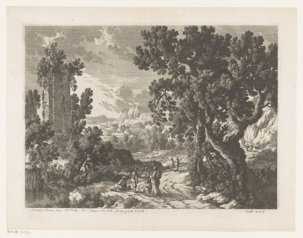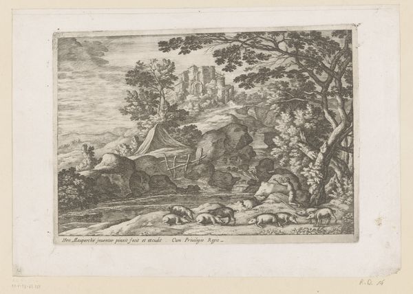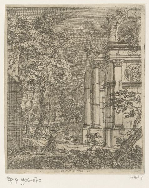 This etching, "Arcadisch landschap met herder tussen ruïnen", was created by Louis Fabritius Dubourg, an artist active in the 18th century. The image invites us into an Arcadian landscape populated with classical ruins and a lone shepherd. During Dubourg’s time, Europe was enamored with the classical world, yet this image hints at a more complex story. While the ruins evoke a glorified past, the presence of the shepherd suggests a different relationship to history and the land. The shepherd, a figure often associated with simplicity and a connection to nature, sits amidst the decaying structures. Is he a caretaker of the past, or an observer of its decline? Are we meant to view this scene with nostalgia, or with a critical eye towards the narratives we construct about history and identity? What does it mean to find oneself between the ruins of the past and the simplicity of the present? The emotional resonance here lies in the space between these worlds, inviting us to contemplate our own relationship with history, memory, and place.