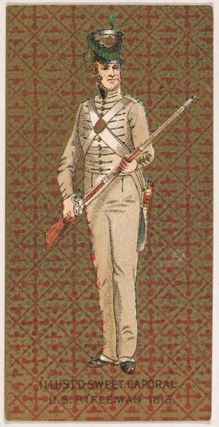Curator: Here we have an American Longrifle, dating roughly from 1815 to 1840. You'll find it residing in the collection of the Metropolitan Museum of Art. It's constructed of wood and metal. Editor: Whoa, it’s beautiful! There’s this elaborate brass inlay on the stock… it almost feels baroque, doesn't it? Delicate, like a musical instrument more than a weapon. Curator: Yes, exactly. The elongated stock, curving gently, presents an elegant profile, while the brass embellishments create rhythmic visual pauses. The grain of the wood, exposed and celebrated, contrasts beautifully with the precision of the metalwork. Editor: That contrast really gets you, right? The refined lines suggest sophistication and artistry, almost hiding its purpose. You kind of forget it was made to kill. It makes me think about how we’re always dressing up darker aspects of our human experience in something beautiful. Curator: The tension between form and function is definitely palpable. What appears decorative also reinforces the structure, reflecting a duality inherent in human creation itself. I'm particularly intrigued by the engraved lockplate, which is almost like a tiny sculpture in its own right. Editor: And even the texture—the smoothness of the metal against that patterned wood grain. I can almost feel it, which pulls you closer, which…is the weirdest sensation considering what it is! Curator: Precisely. This weapon embodies an ambivalence, doesn’t it? It’s a lethal instrument transformed into an object of considerable artistic merit. Its sharp, refined forms hint at utility and also symbolize power. Editor: Yeah. So we are left considering not just craftsmanship but, really, an echo of who we are. Amazing. Curator: A compelling confluence, indeed. The longrifle stands as an artifact of not just technology but cultural complexity and artistry.