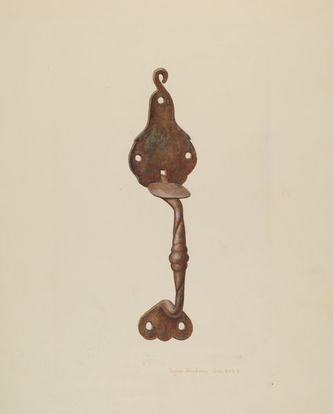 Fritz Boehmer created this watercolor painting called "Door Latch." Consider the context of the early 20th century, a period defined by industrialization. Boehmer's choice to isolate and depict a functional object asks us to reconsider the value and beauty of everyday items. The door latch, often overlooked, becomes a focal point, inviting contemplation on the themes of access and restriction. It represents both the possibility of entering a space, but also of being kept out. Think about who controls the opening and closing of doors, reflecting on how issues of power and social status are embedded in the architecture around us. Boehmer prompts us to meditate on the boundaries we create. He asks, who is on the inside and who is left knocking?
