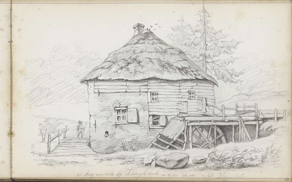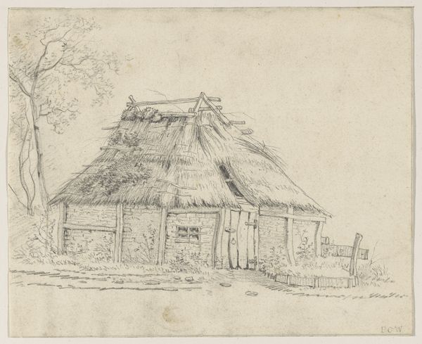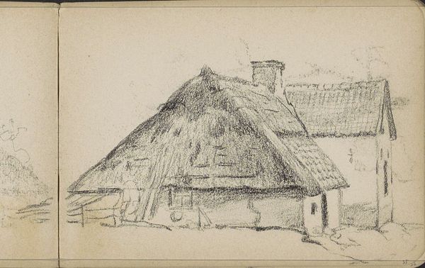 Willem Cornelis Rip made this pencil drawing titled 'Boerderij', or Farmhouse, at an unknown date. It evokes the rural Netherlands, capturing the simplicity of agrarian life, a theme favored by artists seeking authenticity amidst industrialization. Rip's sketch engages with the cultural valorization of the countryside that gained momentum in the late 19th century, particularly in the Netherlands. The modest farmhouse with its thatched roof represents the traditional Dutch landscape, a symbolic space loaded with notions of national identity, simplicity, and connection to the land. Such imagery was often promoted through art institutions and exhibitions, reinforcing a romanticized view of rural life. To fully grasp the work's meaning, we might delve into archival sources, exhibition reviews, and agricultural histories to understand the complex interplay between art, rural society, and national identity during Rip’s time. The art historian's role is to contextualize artworks like these, revealing their nuanced engagement with the social and institutional forces of their era.