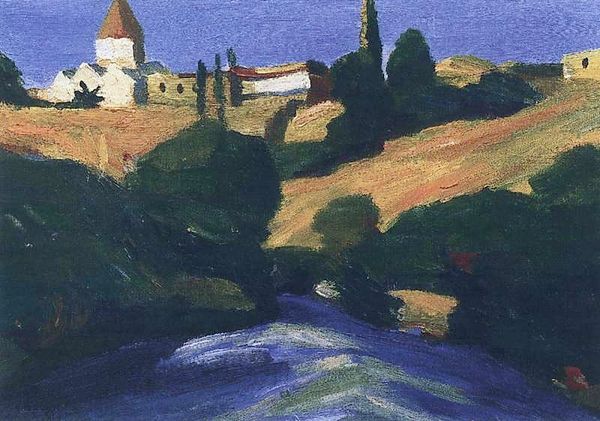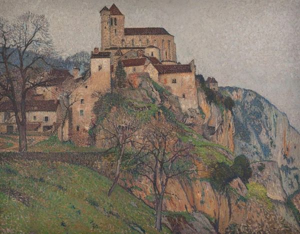Henri Martin captured the village of Saint-Cirq Lapopie with oil on canvas, his technique of dividing color reflecting the late 19th-century art theories. Martin, working in France, chose a subject steeped in history; Saint-Cirq Lapopie had developed during the Middle Ages, its strategic position reflecting the feudal system. The church, prominently perched, would have been central to village life, its presence a constant reminder of religious and social order. Consider how the village, clinging to the cliff, embodies a sense of community and resilience. Martin's impressionistic style softens the harsh realities of medieval life. The bright sky and warm colors may reflect a nostalgic view of the past. Art historians often consult local archives to understand the relationship between an artist and their chosen subject. By researching the history of Saint-Cirq Lapopie, we can better appreciate how Martin’s painting participates in a broader cultural dialogue about national identity, rural life, and the passage of time.
