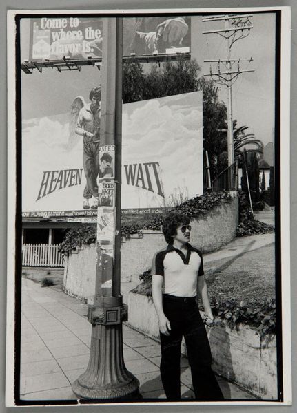 Editor: Here we have Bill Dane's black and white photograph, Untitled (Mexico City). The dollar sign on the car window feels really central to the composition. What do you see in this piece? Curator: I notice the layering of commerce: figures browsing the shop juxtaposed with that boldly rendered dollar sign. The materiality of everyday life is front and center here. Editor: So, how does Dane's choice of subject matter contribute to the commentary on consumer culture? Curator: By focusing on these ordinary scenes of trade and exchange, he brings attention to the economic structures shaping everyday experiences. The photo becomes a document of its time. Editor: That's a really insightful way to look at it; I hadn't considered the context so deeply. Curator: Photography is a physical process. It's an interesting artifact.