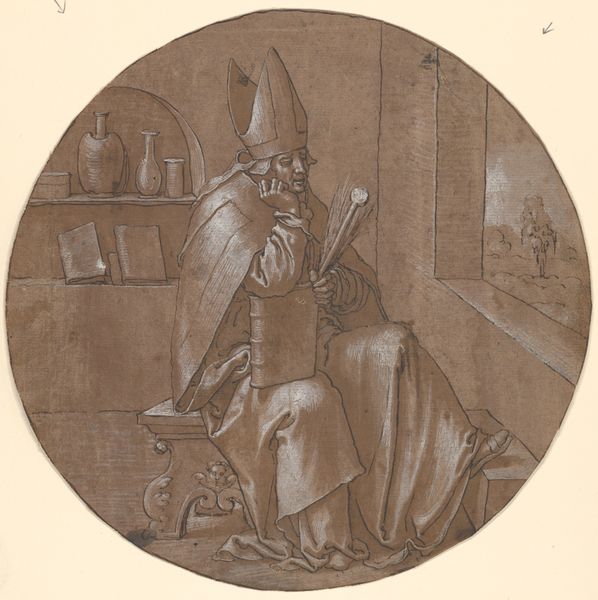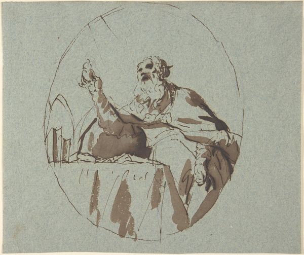 Editor: This watercolor drawing, “Man with Long Beard (Half-Figure) under Starry Sky” by Johannes Wiedewelt, created sometime between 1731 and 1802… it's quite striking. The figure’s solemn expression, combined with that almost celestial backdrop, gives it a really ethereal quality. What’s your interpretation of this piece? Curator: Oh, isn’t it wonderful? It whispers of alchemic secrets and astronomical ponderings, doesn't it? I like to think of him as a sort of cosmic Gandalf. What do you make of the ‘Makyadox’ inscription? Does that unlock something for you? Perhaps it hints at some forgotten philosophical society, a secret brotherhood dedicated to charting not just the stars, but the landscapes of the human soul. Editor: "Makyadox"... I’m not familiar with that. So you see this as possibly referencing hidden knowledge or a secret order? Curator: Absolutely! Imagine Wiedewelt, penning this under the soft glow of candlelight. Each tiny star, a secret he’s weaving into the composition. Do you sense any humor here, or is he deadly serious in his stargazing? I get the distinct sense the guy can be quite sarcastic if pushed! Editor: There’s definitely a bit of…cheekiness to the drawing. Like he’s not taking himself *too* seriously, even with all the cosmic symbolism. Curator: Exactly! And think about that contrast—serious artistry with a twinkle in his eye. It makes the drawing ever so much more relatable. I think I might seek out some cosmic symbolism myself, tonight, now that I’m considering this from a new light! Editor: I’ll be doing some more research on “Makyadox.” It feels like there is a lot more to discover here.