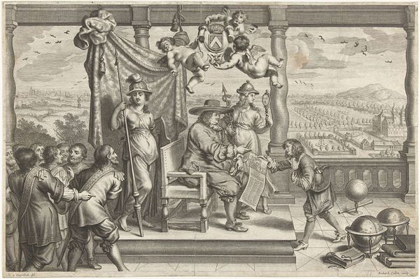 This print depicts the marriage of Jacoba van Beieren and Frank van Borselen in 1434, and was made with metal and acid. This intaglio process involves applying an acid-resistant coating to a metal plate, drawing the composition through it to expose the metal, and then bathing the plate in acid. The incised lines hold ink, which is then transferred to paper under great pressure. The matrix carries the authority of the image. The artist clearly wanted to convey the textures of the clothes, and of the architectural setting, as well as details of the clothing. The marriage scene is highly symbolic, and was aimed at preserving the interests of the political elite. The image is designed to give an impression of wealth and abundance. The very production of prints like these speaks to the development of the media and to the growing influence of the mercantile classes, who sought to record and promote events that served their interests. Appreciating the print means understanding the complex interplay of materials, techniques, and social context that shaped its creation.