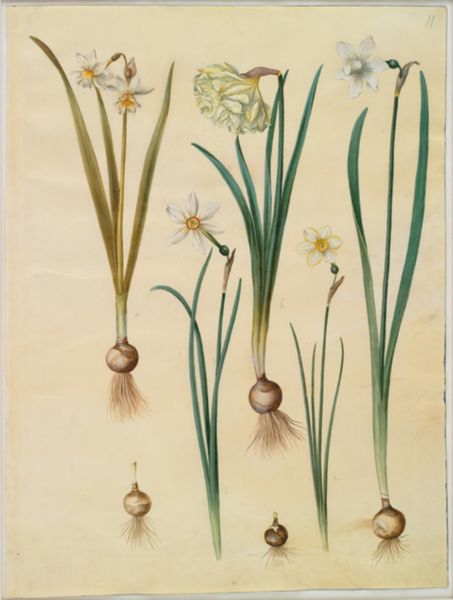 Hans Simon Holtzbecker made this botanical study of Leucojum aestivum, Galanthus nivalis, and Leucojum vernum using watercolour on paper. Created in 17th-century Denmark, this artwork reflects the growing interest in natural history and scientific illustration during the period. Botanical studies like this one were not merely aesthetic; they served a practical purpose. As European powers expanded their colonial reach, accurate depictions of plants became crucial for identifying potential resources, medicinal properties, and agricultural opportunities. Holtzbecker's precise rendering of each plant—capturing the delicate curves of the petals and the subtle variations in color—speaks to the scientific rigor of the time. Institutions like royal courts and universities played a key role in funding and promoting these kinds of studies, recognizing their value in both knowledge accumulation and economic advancement. To fully appreciate this piece, consider the historical context in which it was made—a time when botanical illustration was both an art and a science, deeply intertwined with the political and economic ambitions of its era.