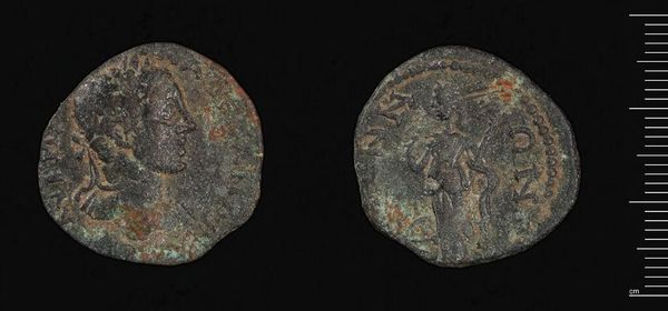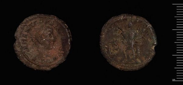 Editor: Here we have a Dupondius, a coin of Antoninus Pius, currently residing at the Harvard Art Museums. Its weathered bronze surfaces speak volumes even before we discuss its imagery. What story does its materiality tell you? Curator: The coin's bronze composition is really interesting. Its production signifies Roman control over resources and labor. The very act of minting was a display of power and a means of mass communication. Editor: Communication through currency? Curator: Exactly! Consider the labor involved: mining, smelting, engraving the die. Each coin reflects the economic and social relationships of the Roman Empire, but also consumption, wouldn’t you agree? Editor: Absolutely. It's fascinating to think about the hands this coin passed through, the transactions it facilitated. It's more than just metal; it's a tangible connection to a past economy. Curator: Precisely! Examining this coin reveals the means of production and consumption inherent in empire.