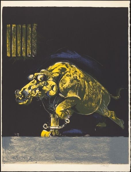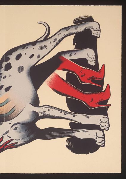 Editor: This is Jack Davis’ “Penn State Nittany Lions College Football Illustration,” created around 1990 using ink and drawing techniques. It's bursting with ferocious energy! The cartoonish lion in football gear is a striking image. What catches your eye when you look at this piece? Curator: What a delightfully ferocious fellow! I think Davis really captures the almost comical intensity of college sports, doesn’t he? Beyond the obvious visual impact, I’m struck by the bold lines. He's fearless with them! Look at the rendering of the paws...they almost burst out of the image and remind us of what is wild in human competitive sports. Doesn't the image practically roar at you? Editor: It does! I didn't think about that primal aspect before. Is the exaggerated style typical for this kind of sports illustration at the time? Curator: Absolutely. Think about the cultural context of the late 20th century and the growing saturation of American life with comics and televised sports. Caricature allows for a certain type of immediate, humorous, and yet culturally cutting, perspective. Is this lion endearing? Or is there something sinister? Davis seems to ride that knife-edge. What do you think? Editor: That's a cool question, actually it has aspects of both. It feels more complex than just a simple cartoon. It is unsettling and humorous at the same time. Curator: Exactly. It gets to the core, primal appeal of sport. The exaggerated nature is what really defines its effect, a cultural artefact that is spot on! Editor: I hadn’t considered all the layers before! It’s more than just a mascot; it's a wild creature barely contained by the uniform. Curator: Agreed! It's the art of controlled frenzy, both on the field and on the page.