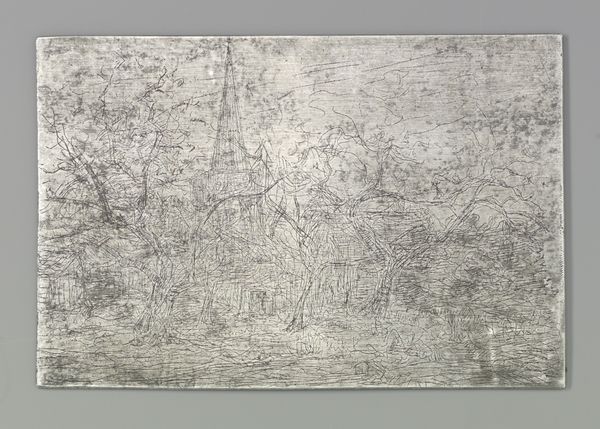 Editor: This is Anselm Kiefer's "Lilith," created in 1989 using mixed media, including paint and what looks like other matter—straw, maybe? It feels heavy and somber. The color palette is muted, almost monochromatic, and there is an abstract landscape. How do you interpret this work? Curator: When I look at "Lilith," I see more than just a somber landscape; I see a commentary on historical erasure and feminine power. Kiefer is deeply engaged in grappling with German history, particularly its darker aspects. Lilith, in Jewish folklore, represents a powerful, independent woman who refused to submit to Adam. She's often demonized, cast as the original rebellious woman. Considering this context, how might the use of matter-painting – those heavy, layered textures – contribute to your understanding? Editor: The texture and the earthiness…it's almost like he’s unearthing something buried. Bringing a suppressed story to light. Is that the artist intention, to literally "dig" up past? Curator: Exactly. He uses the materiality of the painting – the weight of it, the roughness – to evoke the weight of history and the burden of memory. By associating this ravaged landscape with Lilith, Kiefer seems to reclaim her, not as a demon, but as a symbol of resistance and a reminder of voices silenced throughout history. Doesn't the Neo-Expressionist style further underline the intensity of his message? Editor: Yes, I see what you mean! The emotion feels very raw, unrefined. And so he is inviting the viewer to question the dominant narratives? To seek alternative stories? Curator: Precisely! It encourages us to look critically at history, gender roles, and power dynamics. The work prompts us to question who gets to tell the story, and whose voices are marginalized. What will you take away from this encounter? Editor: I’ll remember that even abstraction can convey powerful political and social narratives. Thanks! Curator: The pleasure is mine! Remember that art is rarely ever created in a vacuum, its social significance endures and constantly shifts over time.