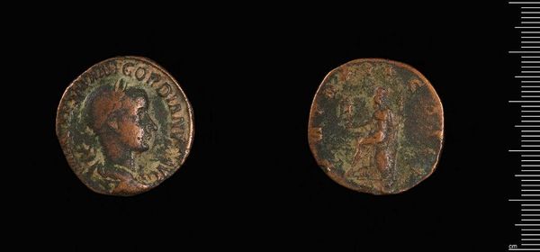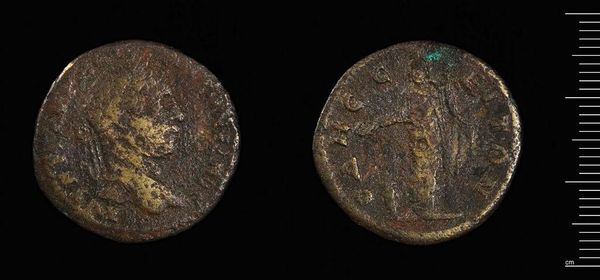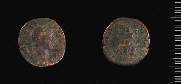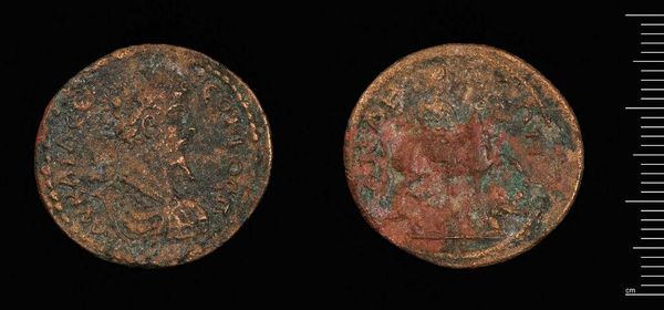 Editor: This is a coin of Patrai under Caracalla, held in the Harvard Art Museums. It feels weighty, not just literally at 8.59 grams, but also historically. What symbols do you see at play here? Curator: Coins are fascinating. One side shows Caracalla, ruler and man, while the reverse likely depicts a local deity, perhaps Artemis. The ruler's portrait projects power and authority; the deity assures divine favor and cultural continuity. Editor: That’s interesting. So the coin served not just as currency, but as propaganda and a cultural touchstone? Curator: Precisely! It's a miniature stage for negotiating identity and power in the Roman Empire. What stories do you think it could tell? Editor: It makes me think about the stories we choose to tell, and how we use images to tell them. Thanks for this insight!