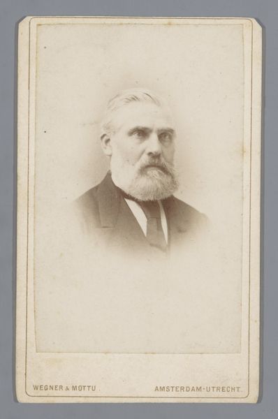 Editor: We're looking at a gelatin silver print, a photographic portrait from sometime between 1890 and 1920, titled "Portret van Edouard Ernie." It's a fairly conventional portrait, but there's something about the soft focus and aged quality of the print that gives it a dreamlike feel. What historical contexts shape how we view portraits like this? Curator: Well, portraits in this period become fascinating documents when considered through the lens of social history. Photography had become more accessible, democratizing portraiture, once the domain of the wealthy who could commission paintings. But who had access to studios and who were these photographers? Were they catering to the rising middle class, constructing very specific visual identities? Editor: So, it's not just about capturing a likeness, but about creating a certain image for public consumption? Curator: Exactly! Think about the subtle choices: the pose, the clothing, the backdrop if there were any. All meticulously curated. Even the soft focus might reflect a desire to emulate the aesthetics of painting, to elevate photography as a form of art, legitimizing it within established cultural hierarchies. How did modernism challenge these established codes, I wonder? Editor: That makes me consider this in relation to a lot of social and economic issues happening at the time! I definitely appreciate understanding portraits like this not just as individual representations, but as reflections of larger societal trends. Curator: And also power structures within those trends. It shifts our focus, doesn't it, from individual genius to collective influence, highlighting the complex relationships between art, society, and the people who create and consume imagery.