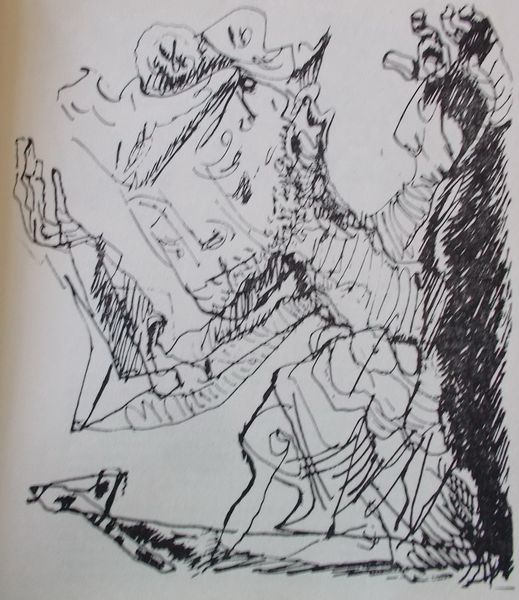 This satirical pen drawing by the Kukryniksy collective presents a stark vision, using simple materials to deliver a complex message. The fluidity of the line work suggests a rapid, almost urgent creation process, a process of capturing immediate reactions and political commentary. The texture in this piece is implied rather than directly rendered, relying on the density and variation of lines to suggest form and depth. The hatching technique, particularly around the figures, creates a sense of volume and shadow. There is a sort of nervous energy in the scratching lines, which, if you look closer, give the impression that the characters are decomposing into the earth. It's hard not to see influences from artists like Grosz or Dix, masters of social critique through caricature, who also used line to express profound political and social discontent. Ultimately, the drawing invites us to see the many layers of meaning and invites contemplation on the way art can reflect the nuances of history.