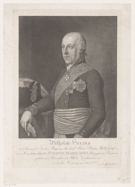 Curator: Immediately, there’s something unsettling about this portrait. The severe, almost grim expression... Editor: Indeed. What you're seeing is "Portrait of Gebhard Leberecht von Blücher," an engraving that was created sometime between 1815 and 1851. It's part of the Rijksmuseum's collection, rendered in a distinctly Romantic style. Look at how the light catches the sharp angles of his face. Curator: Yes, that high contrast gives it such starkness. The oval frame is classic, of course, hearkening back to older portraiture conventions, but it feels like it barely contains the intensity of his gaze. Note the incredibly precise, thin lines that build up to form the overall shape and structure. Editor: Right, and Blücher wasn’t just any subject. He was a Prussian field marshal instrumental in the defeat of Napoleon at Waterloo. Think about that context – this portrait comes after years of war and upheaval in Europe. The rigidity in his posture and that intense expression reflect that historical moment. He seems to carry the weight of that victory. Curator: Observe how his uniform, bedecked with medals and epaulettes, is depicted with such detail. It reinforces the image of a powerful, distinguished leader. Yet, isn't there a curious flatness, especially in the rendering of the clothing? It creates a fascinating tension with the more detailed facial features. Editor: I find that tension crucial. His carefully constructed image projects strength but also speaks volumes about the anxieties and shifting power dynamics of the era following the Napoleonic Wars. This portrait tries to encapsulate the persona of a nation-saver but leaves something important out of the picture. Curator: I appreciate how you situate this within a larger narrative. For me, the work serves as an interesting example of formalist concerns of contrasting light and shadow that can bring forth complex emotions and interpretations from even a two-dimensional surface. Editor: And for me, considering Blücher's legacy, it begs the question: how do we critically examine heroic narratives constructed during periods of conflict and nation-building? These sorts of portraits aren't just visual likenesses; they’re tools.