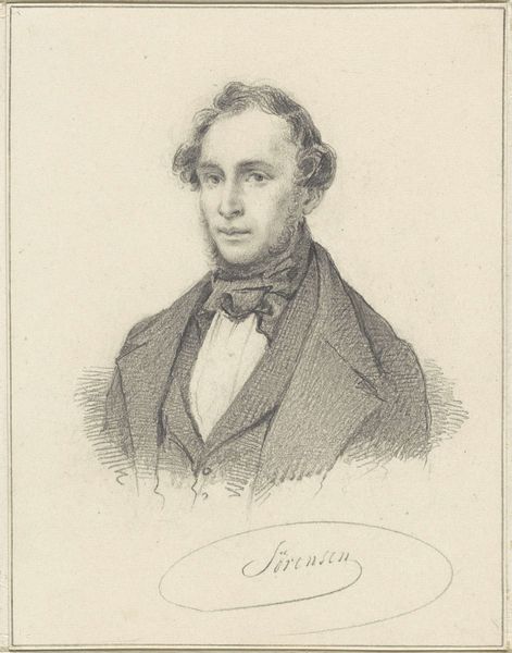 Editor: This engraving is titled "Portret van Abraham Johannes de Bull," dating roughly from 1842 to 1873, by Willem Frederik Wehmeyer. The detail achieved with the engraving technique is striking, especially in the man’s face. What can you tell me about its symbolic resonance? Curator: Indeed, note how the eyes are directed slightly upward and away, a recurring motif in romantic portraits suggesting introspection, a reaching for higher ideals. Do you see how this is further emphasized by the loose cravat, a sign of the sitter's individualistic flair? Editor: I do. It’s as if he is posing for the future. Curator: Consider, too, the significance of portraiture in that era. It served not only as a record of appearance but also as a statement of social standing, aspirations, and the very essence of self. A portrait then becomes an icon, does it not? How might Abraham Johannes de Bull want to be remembered, do you think? Editor: As someone forward-looking and contemplative. Almost literary. Curator: Precisely! The portrait encapsulates collective memory and aspiration, bridging individual identity with broader cultural values of the Romantic period. Every line tells a story, every shadow whispers a feeling. What stories do you think we continue to tell ourselves through portraits today? Editor: I never considered how portraits act as cultural mirrors as much as records of a specific person and time. Thank you, I have some interesting new paths to follow now. Curator: The beauty of art lies in its layers, its ability to reflect both the moment and the enduring narratives of the human experience.