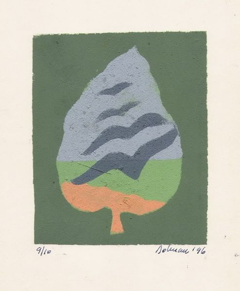Editor: This artwork, titled "Look How the Moon Steps on the White Lonely Hills" by Vasile Dobrian, appears to be an acrylic paint print. The pastel colors create such a gentle, almost dreamlike feeling. What visual language speaks to you in this piece? Curator: The work intrigues me because it layers several symbolic registers. On the surface, we see a flattened, almost cartoonish landscape contained within the shape of a leaf, maybe a spade, if one reads it from playing cards imagery, evoking luck or fortune. Now, consider the moon: cultures worldwide have long associated the moon with femininity, cycles, and the subconscious. What about these “lonely hills"? What do you associate that imagery with? Editor: Hmm, maybe a sense of isolation, or perhaps the end of something. Like, as the title suggests, a sense of encroaching quietude… Curator: Precisely! Then, consider the colors: soft, muted. These contribute to that quiet mood. Do you feel any tension in it, perhaps through its geometry? It's like a simplified landscape, hinting at something familiar, while simultaneously receding from it. It’s not a straightforward image. It makes one recall emotional connection through memory. Editor: I see what you mean. The colors almost soften the geometry, while the simple forms give way to those underlying cultural themes and quiet narrative. Curator: It seems that Dobrian is trying to hint to visual archetypes; how something elemental like the moon rising above the hills is actually a deeply rooted narrative we subconsciously feel. Editor: That’s fascinating. I definitely see it differently now – I never would have considered the depth of symbolism on my own. Curator: It's often through recognizing these repeating visual cues, these motifs, that we uncover layers of cultural and personal meaning in art. Editor: Well, thank you so much. It has definitely given me a fresh perspective on decoding artwork.