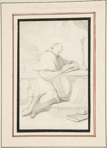 Lazzaro Tavarone made this small drawing of Andalo di Negro, the poet and astrologer, using pen and brush, with gray wash, on paper. The sketchiness of the drawing is notable, with a grid showing faintly, as if the artist wanted to accurately scale up the drawing at a later date. Tavarone used an economy of line to depict the figure, with darker washes to emphasize the fall of the drapery, and the sitter's features. The globe to the right of the figure, reinforces his occupation and status. Although seemingly quick, the drawing required skill and practice. As a preparatory drawing, the use of pen and wash allowed for corrections and changes, to capture the likeness of the sitter. The drawing's material presence is a reminder of the artist's labor. By understanding the artist's process and the drawing's materiality, we gain a deeper appreciation for its cultural and historical context, moving beyond traditional notions of fine art.