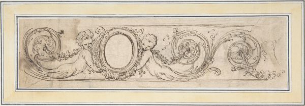 Curator: The subdued color palette and almost academic style of this 1890 watercolor by Albert Maignan lends it a quiet, contemplative air. The piece is titled 'The philosophical works of Voltaire (L'Encyclopédie, les Essais, Les Pensées).' Editor: My first thought is that it feels more like a fragment, or perhaps a preparatory study for a larger project. The composition, with its segmented arches and the repetition of figures, offers an interesting visual rhythm. Curator: Indeed. Maignan was known for his large-scale historical and allegorical paintings, and often did mural work, making the 'fragment' reading a valid one. This piece, although academic in its rendering of the human form, points to the revival of classicism, specifically within the academic art circles of late 19th century France. We can consider the implications for artistic labor and social consumption—were pieces like this conceived for salon exhibition? Were these exercises? Editor: Well, what interests me particularly are the relationships formed through shape and implied narratives. How do those arching divisions affect the unity of the piece? And how are we meant to interpret those figures engaged in contemplation and creation? It seems almost allegorical—though perhaps leaning a bit too heavily on traditional symbolism to spark genuine interpretive creativity on its own. Curator: But consider also that 1890 in France was the calm after decades of social, political and aesthetic upheaval. Academic art held strong as a signifier of tradition and order. This could also be read as a material assertion of classical ideals. Even watercolor, sometimes dismissed as 'lesser,' is given serious attention. Editor: I appreciate that thought. It's certainly a well-executed demonstration of technical skill. Though for me the interest in that sort of traditional skill will never surpass the way the artwork seems to play with established motifs. Perhaps even critiquing them through repetition. Curator: Interesting—seeing as both materialism and idealism coexist here! I will now consider what its creation and context imply in fresh light. Editor: Precisely, and perhaps the conversation of art history always cycles that way: revisiting established truths and looking anew!
