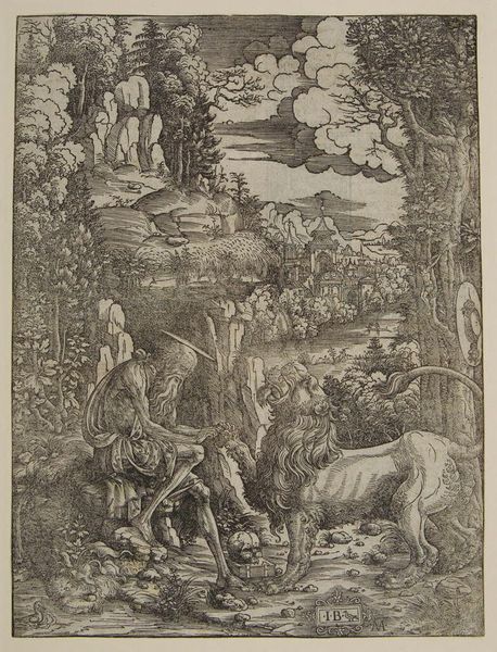 Curator: Here we have an intriguing, though unsigned, woodcut titled "Aeneas's Battles in Latium: Aeneas fights Mezentius and Lausus," currently residing at the Harvard Art Museums. Editor: My first impression is one of chaotic energy, even violence. The stark black and white contrast amplifies the intensity of the battle. Curator: Absolutely. The image depicts a scene from Virgil's "Aeneid," showcasing Aeneas locked in combat. Mezentius is the Etruscan king, and Lausus, his son. It is interesting how they are presented here. Editor: The depiction of Aeneas as a triumphant hero feels almost…formulaic. But look at Mezentius, his shield adorned with symbolic charges, perhaps representing his lineage or attributes? What does the artist want us to read into that visual information? Curator: It’s difficult to say definitively. The lack of shading and the somewhat stiff figures create a sense of flattened space. This could be intentional to focus on the symbolic weight of the figures. Editor: Indeed, there's a powerful narrative condensed in this small print. Makes you think about how these stories of power and leadership still resonate. Curator: Precisely. A fascinating glimpse into how classical narratives were interpreted and disseminated.