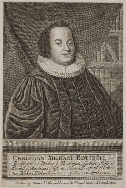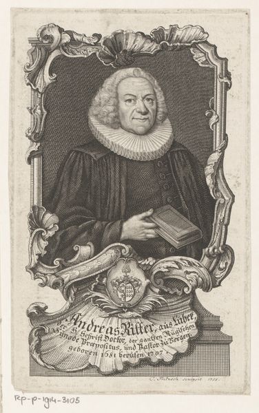 This portrait of Johann Christoph Zerbst was made in the 18th century by Jakob Petrus, probably as an engraving. Zerbst, a General Superintendent, is framed by an elaborate oval border containing inscriptions that speak to his birth and death, as well as his virtues. The culture of portraiture in 18th-century Europe was deeply intertwined with social status and power. Portraits served as a means of commemorating individuals, but also of conveying messages about their position in society, their piety, and their learning. This portrait is typical of its time in the way it presents Zerbst as a figure of authority and respectability. His formal attire, the book he holds, and the detailed inscription all contribute to this image. To fully understand this work, we can turn to historical records, genealogical information, and studies of religious and social structures in 18th-century Germany. This enables us to see how art is always embedded in specific social and institutional circumstances.