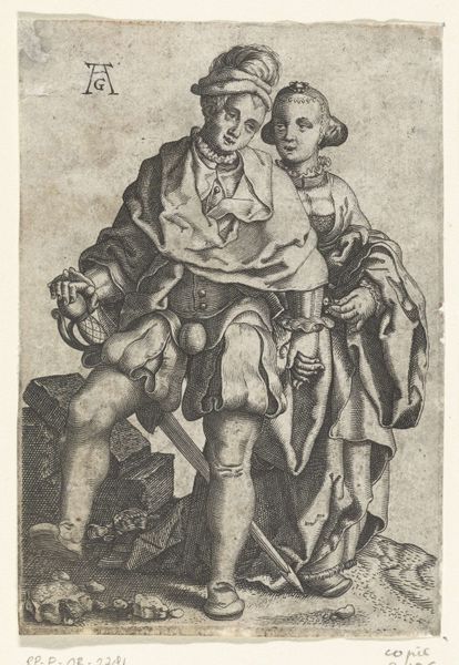 Eustache Danzel created this print of Rubens' sons, Albert and Nikolaus, in the 18th century. It reflects a moment in time where the portrayal of children in art began to shift, influenced by evolving ideas about childhood and family. Here we see two boys, presumably members of the upper class, dressed in ornate clothing, the elder brother protectively holding the younger, who is playing with string. The intimacy and candor departs from earlier, more formal, modes of portraiture and offers an intimate glimpse into the life of the family. Danzel invites us to reflect on the tenderness of fraternal bonds. The image does more than depict; it evokes the warmth of familial connection and perhaps reminds us of our own childhood attachments and relationships. It’s a tender expression of kinship amidst the backdrop of societal expectations.