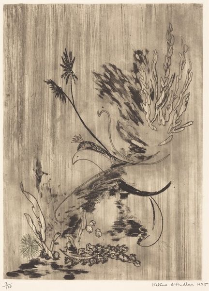 Giancarlo Tognoni created this etching, Volo, using an intaglio process. The fine lines you see were incised into a metal plate, likely copper or zinc. Ink was then applied to the plate, pushed into the etched lines, and the surface wiped clean, allowing the image to be transferred to paper under high pressure. Tognoni has imbued a sense of freedom and spontaneity in this print, achieved through the directness of the etching process. The network of lines captures the texture of the natural world. By manipulating the acid and the duration of the etching, Tognoni was able to control the depth and darkness of the lines, adding depth to the composition. Volo, meaning 'flight' in Italian, brings to mind not only the flight of birds or insects, but also the artist’s hand, gliding across the plate to capture the essence of movement in nature. Looking at this, it’s clear that the real subject of art is always the process, with materials and making carrying cultural and social significance.