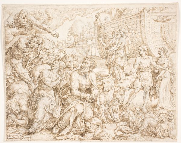 In Maarten van Heemskerck's pen drawing, "The Deluge," created in 1559, we witness a scene of biblical destruction. The imagery is dominated by desperate figures clinging to life, a motif as old as humanity itself. Observe how Heemskerck renders the figures scaling trees, a visual echo of the "Storming of the Heavens" found in ancient Mesopotamian art, such as the story of the Tower of Babel. Both narratives grapple with humanity's ambition and its subsequent fall. Consider the figure carrying his loved one – a pietà in reverse, a motif that resurfaces throughout art history. The emotional weight of this gesture connects us to the universal anguish of loss. The flood itself, a symbol of purification and destruction, isn’t unique to the Old Testament. Similar catastrophic floods appear in Greek myths, like that of Deucalion. Each iteration reflects a collective memory of existential threat, a deep-seated fear of annihilation. Through such symbols, Heemskerck’s "Deluge" speaks to our shared human experience, transcending time.