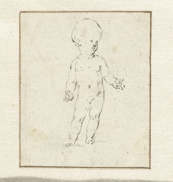 Jan Punt created this study of a child's body using etching. Although the artwork is a study of proportion, it is also a reflection of the cultural values and artistic practices prevalent in 18th-century Europe. We see the influence of the Enlightenment, a period marked by reason, science, and the systematic study of the natural world. Child portraiture became increasingly popular among the European elite, reflecting changing attitudes towards childhood and family. These portraits often served to convey messages about lineage and status. The choice to depict a child nude is an echo of classical art which idealized the human form. However, consider the power dynamics inherent in representing a child in this way. The study prompts us to think critically about how innocence and vulnerability can be portrayed, particularly within the context of art commissioned by the wealthy.