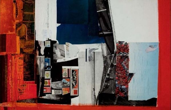 Robert Rauschenberg made this collage, or "combine" as he called them, layering printed imagery, paint and found objects. Rauschenberg embraces the process of artmaking and makes it visible in this work. Here you can see the layering of imagery and how he builds up the surface through many different marks. The red circular form in the middle acts as an anchor for the eye. It is also a disruption, like a wound in the image, contrasting with the more photographic imagery around it. This interplay between abstraction and representation is something Rauschenberg was always so good at. He manages to find a balance between control and chaos, which gives his work a kind of raw energy. Rauschenberg's approach reminds me of what Schwitters was doing in Europe a few decades earlier, but Rauschenberg was really creating something new, making art out of the world around him. For Rauschenberg, art was not separate from life, but a part of it.