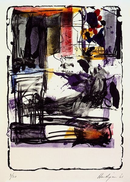 This ‘Untitled’ print by James McGarrell looks like it was made in a hurry, but maybe it wasn’t? The way the colours and forms bleed into each other makes me think about process, and how artmaking is like a conversation with yourself. The print is mostly greens and whites, with some coppery browns and purples peeking through. I love the way McGarrell uses these colours to create a sense of depth and space, even though the image is mostly flat. Look closely, and you can see the texture of the paper, and how the ink has been pressed into it, like a memory. The figure seems to be sitting on a bench, maybe in a park or garden, lost in thought. The more I look at this print, the more I see how McGarrell is playing with the idea of representation. It makes me think of other artists like Elizabeth Murray, who also like to play with form and colour in their work. This piece is a good example of how art can be both beautiful and thought-provoking, and how there's always more to discover the longer you look.