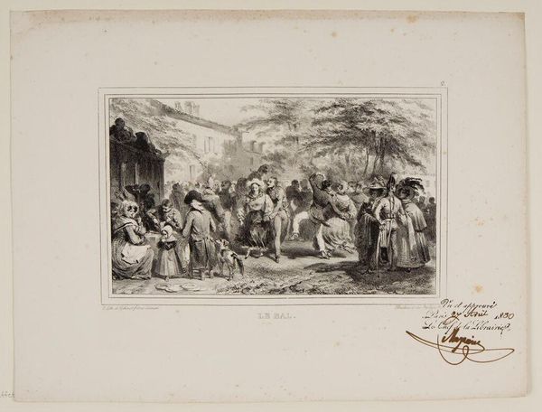 Editor: This is August Gaber's "Procession of People Going to Church," an engraving. The image has a somber, nostalgic quality. What do you see in it? Curator: The symbols! Notice the graveyard, juxtaposed with the procession; life, death, and faith intertwine. The image is laden with cultural memory, isn't it? Editor: It is. The angels and the family, what do they represent? Curator: The angels speak to salvation, while the family embodies continuity. Think about how these images resonate within a specific cultural context. What feelings do they evoke in you? Editor: Hope, maybe? It’s fascinating how these symbols create meaning. Curator: Precisely. And how that meaning shifts across time and cultures. A reminder of the enduring power of visual language.