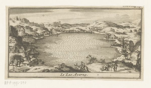 Editor: This is "Romeinse zwavelbaden," or "Roman sulfur baths," an engraving by Pieter van der Aa, created sometime between 1682 and 1730. There’s almost a dreamlike quality to it. It feels both distant and detailed. What catches your eye in this piece? Curator: I’m immediately drawn to how Van der Aa represents the Roman bathhouses themselves. Notice how they're depicted not as pristine structures, but as ruins? These fragmented remains carry a heavy symbolic weight, speaking to the transience of empires and the passage of time. The bathing, itself, signified cleansing - and transformation. Editor: Transformation, like a rebirth? Curator: Precisely. The sulfur baths weren’t merely for hygiene; they were a ritualistic space where the bather might symbolically shed their old self and emerge anew. The very act of immersing oneself in water suggests purification, doesn't it? But here the sea becomes a symbol of broader life, chaos and opportunity - what do you see? Editor: The ships off shore juxtapose a further expansion into the unknown? With a potential implied challenge for its figures to seize control? Curator: Exactly! The image presents this concept between the distant ships and crumbled remains in a distinct contrast - expansion or preservation? A memory we're trying to seize or leave behind? It encapsulates a broader cultural memory – of Roman grandeur and the awareness of its ultimate decline. It’s this constant interplay of creation, dissolution, and re-emergence that makes it resonant for me. Editor: I never would have looked at it that way. Now, those ships almost taunt the figures in the water. So much more to think about than just people bathing! Curator: Precisely. It is often within those historical and cultural residues we find that true visual and conceptual insight may be discovered.