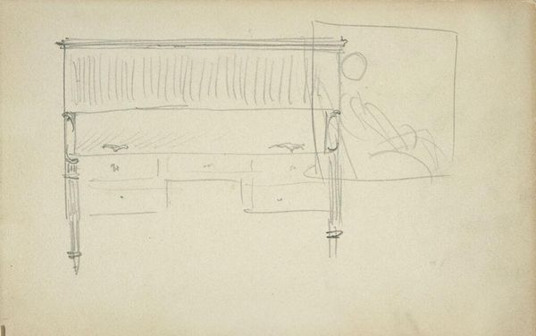 Isaac Gosschalk, a Dutch architect, made this sketch titled 'Plattegrond, onder andere met een keuken'. Drawn sometime during the late 19th century, this sketch offers a fascinating glimpse into domestic life in the Netherlands. It depicts a floor plan, with a detailed, ornate rendering of what seems to be a fireplace. During this period, the design and layout of homes reflected evolving social norms and gender roles. The kitchen, often the domain of women, was both a space of labor and, sometimes, of community. How does the design of this kitchen impact the lives of those who inhabit it? Consider the sketch as a historical document, one that invites us to reflect on how architectural spaces shape our identities and daily routines. This floor plan, with its emphasis on certain rooms, silently speaks to the domestic hierarchies of the time.