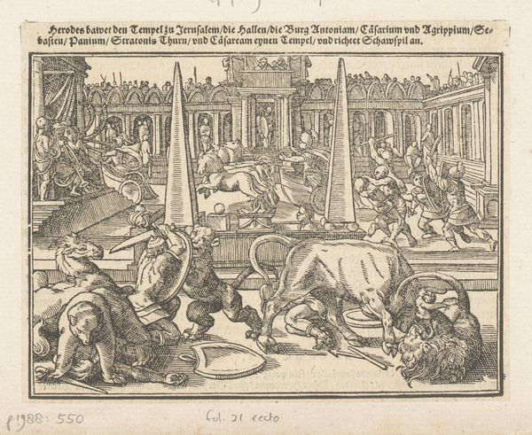 This is Christoffel van Sichem the First’s woodcut of gladiators fighting in an arena. Made in the late 16th or early 17th century, the print offers a window into the spectacle of violence as entertainment, revealing a confluence of cultural fascination and ethical quandaries. Van Sichem made this print in a time of significant social upheaval. Religious conflicts, the rise of mercantile capitalism, and burgeoning colonial enterprises shaped the worldview of the artist and his audience. As you look, consider that the image is not just a depiction of combat but also an assertion of power dynamics, between man and animal, performer and spectator. The hierarchy on display, reminiscent of the Roman Empire, served as a potent symbol amid emerging European powers. The print’s detailed rendering of the arena, with its ordered architecture and enthralled audience, contrasts sharply with the chaotic violence unfolding in the foreground. Reflect on how this composition engages with notions of civility and barbarism, inviting us to question what it means to witness, or even enjoy, such brutal displays.