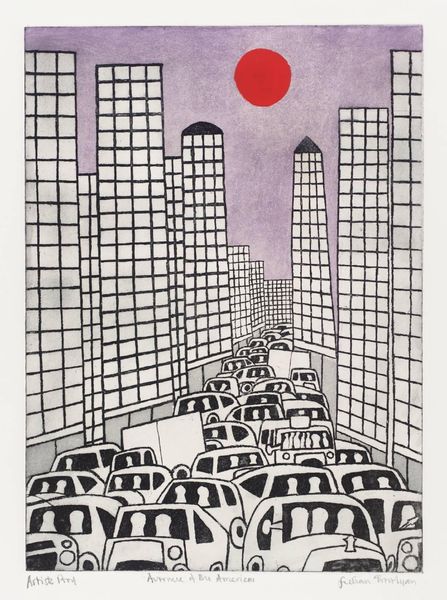 Curator: There’s a real claustrophobia present the moment I lay my eyes upon this piece, this sensation of compressed space in Karl Wiener’s "Dunkle Gasse" made circa 1922. What’s your immediate impression? Editor: Yes, compressed, even oppressive! The weight of that darkness pressing down… But there's also a strange beauty, almost a ritualistic formality in the way the two figures at the foreground seem to be purposefully navigating the shadows. Curator: The artwork, rendered in ink, exemplifies German Expressionism, doesn’t it? You’re drawn into considering the post-war societal anxieties that found artistic expression in distorted perspectives and haunting themes. The sharp angles, the overwhelming blues and blacks... it reads as a physical manifestation of unease and alienation, don't you think? Editor: Absolutely, it is so demonstrative of this kind of expressionism, using visual shorthands of anxiety that burrowed into a society's visual language. Take the alley itself. The narrowing perspective converges at a vanishing point. It creates this tunnel vision that sucks us into something that feels beyond our control. Note the symbolism there. But more personally, I see the window-like openings scattered across the tall buildings--reminding me of closed, watching eyes. Curator: It almost stages the social and psychological landscapes of the Weimar Republic with their profound inequalities. Two figures, perhaps representing the bourgeoisie, positioned in stark contrast to the enveloping darkness… There’s a distinct awareness of class and power dynamics etched within that visual arrangement. What kind of statement would you say that this illustration tries to make? Editor: Precisely! These top-hatted figures seem dwarfed, consumed almost, yet they project this air of somber authority through their iconic association to the upper classes. It also highlights the duality—the societal facade presented versus the crumbling reality experienced in a morally compromised period. They also embody archetypes. As though these characters from dreams were captured and brought here into full awareness, if that makes sense. Curator: In seeing the architecture, then, the ink strokes and deep blues and blacks come into play with one another… It's as though Wiener is holding a mirror up to society itself, reflecting back the ugliness that simmers beneath a veneer of progress and propriety. The street is rendered as both menacing and inescapable. Editor: That feeling, the inescapable. That is a part of it's charm to me! To me it’s also about distilling collective anxieties, where art is used as a tool to face and give meaning to trauma by manifesting the unspeakable feelings people experience with clear imagery. Curator: Well, whether a mirror or a premonition, "Dunkle Gasse" certainly encourages us to consider what past shadows might still stretch before us now. Editor: Indeed, a shadowy, thought-provoking passage this piece delivers us into.